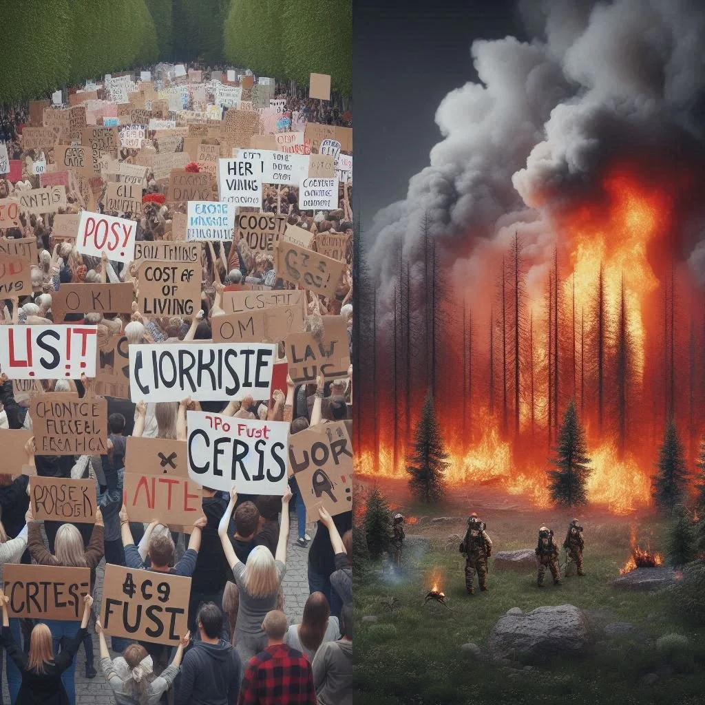 The terms ‘mega-crisis’ and ‘poly-crisis’ are defined as multiple crises, over a range of areas, often with a global dimension, interacting with each other in ways which make the sum more complicated and intractable than the individual parts. ‘Permacrisis’ is a term that views the mega- or poly- crisis with a more subjective lens: it implies a more permanent state of crisis, accompanied by a very real sense of pessimism and dread, a feeling that there is no way out, a collapse of life as we know it.